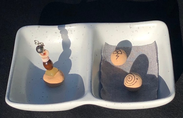 PRAYER TOTEMS are to be held and warmed by a person’s hand or hands. The stones, shells, and NDNS Hemish Earth Prayer Beads are meant to absorb the mechanical energies from being touched and then to amplify your prayers and meditations attuned to their own attributes.