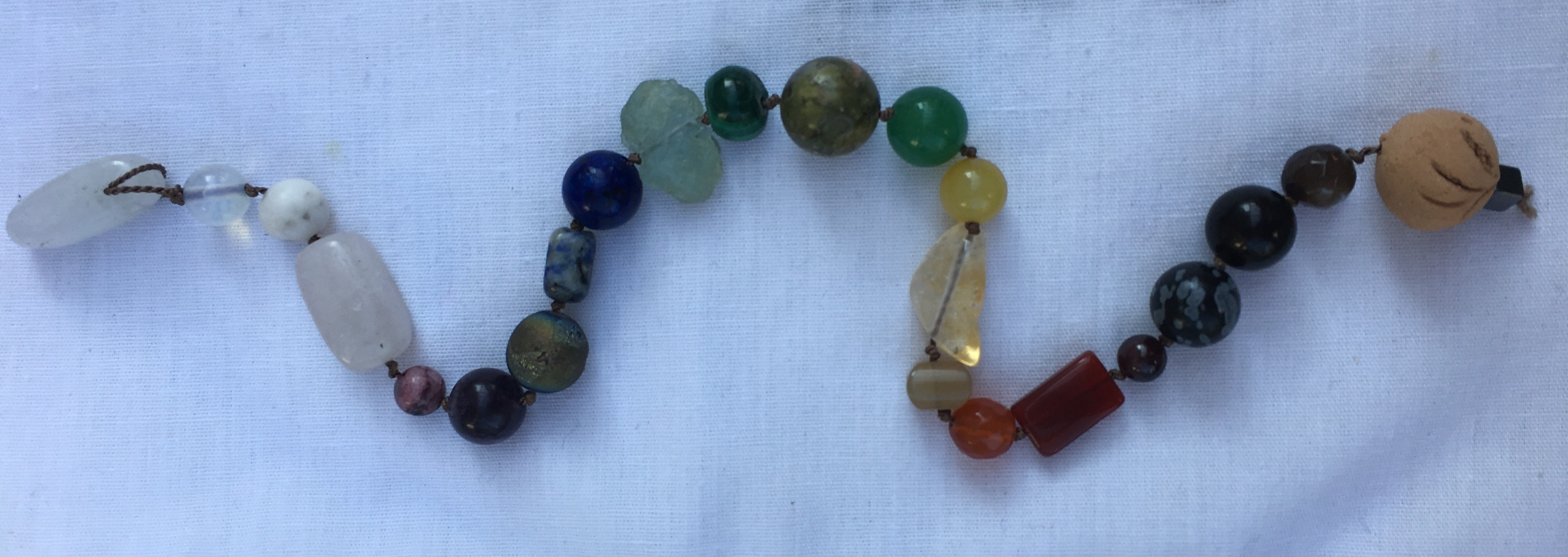 Each bead is hand-knotted using 100% silk thread. The stones and crystals are natural with their individual characteristics. Each Prayer Totem comes with descriptions and attributes of each stone and crystal to aid in your contemplation and focus your thoughts. Meant for meditation and prayer, handle your NDNS Prayer Totem with care and positive energy. Cleanse your Prayer Totem often, even keeping it next to clear quartz. Charge your Prayer Totems under the full moon with a heart full of gratitude.