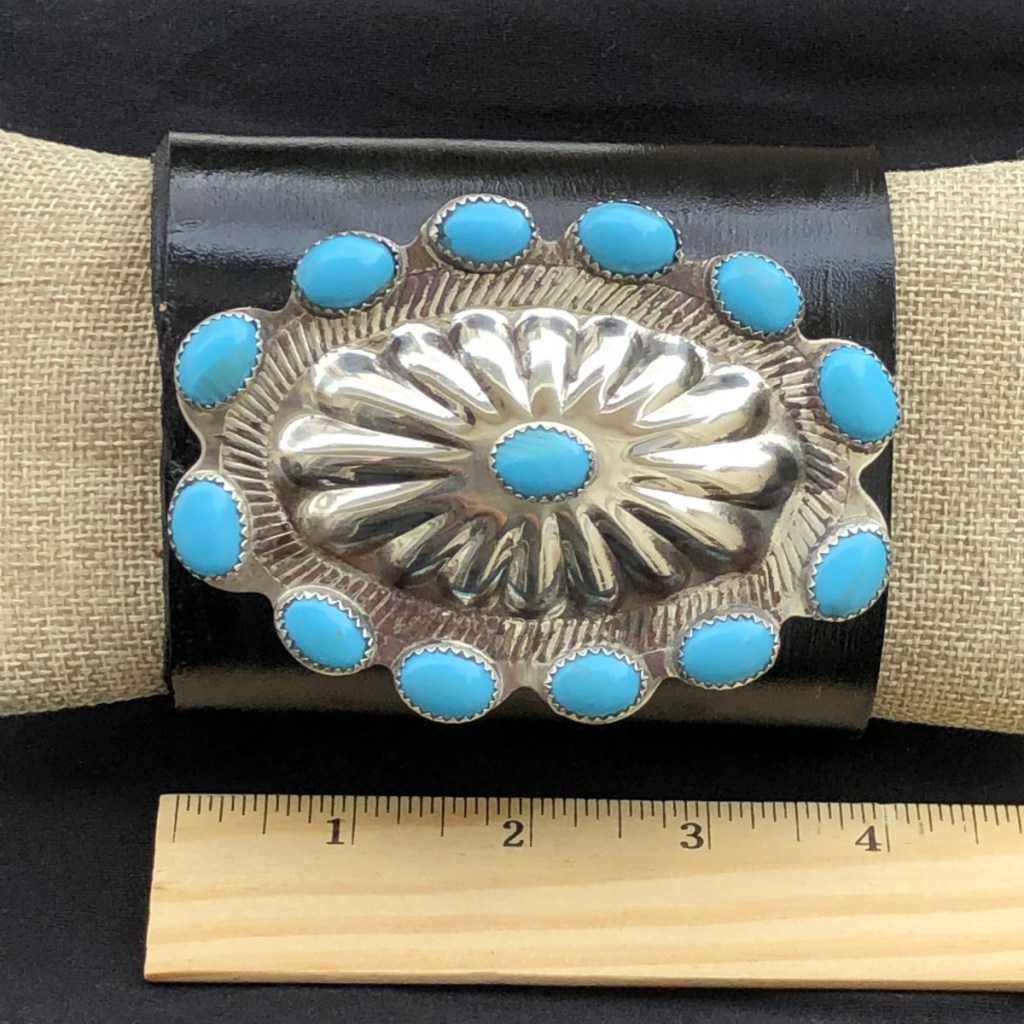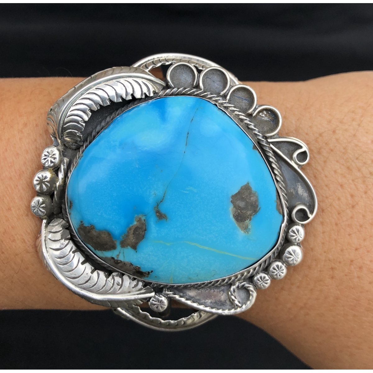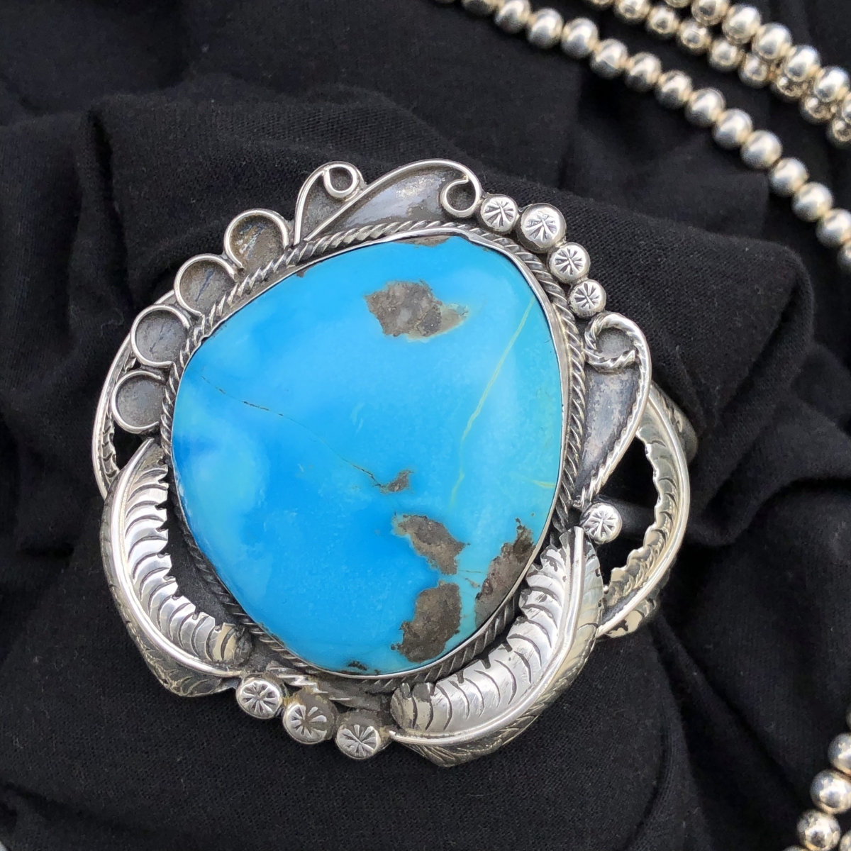 SOLD! The Kingman Cuff featuring rare natural turquoise.